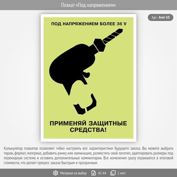 Плакат «Под напряжением» (Агит-10, 1 лист) в Щёлково купить