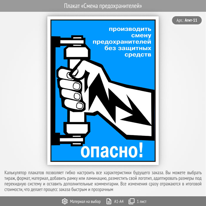 Плакат «Смена предохранителей» (Агит-11, 1 лист) в Щёлково купить
