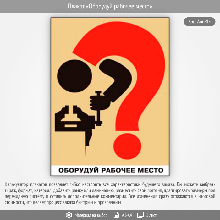 Плакат «Оборудуй рабочее место» (Агит-15, 1 лист) в Щёлково купить