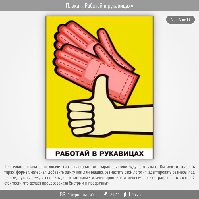 Плакат «Работай в рукавицах» (Агит-16, 1 лист) в Щёлково купить