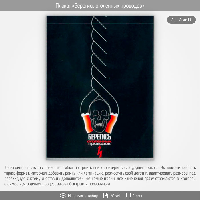Плакат «Берегись оголенных проводов» (Агит-17, 1 лист) в Щёлково купить