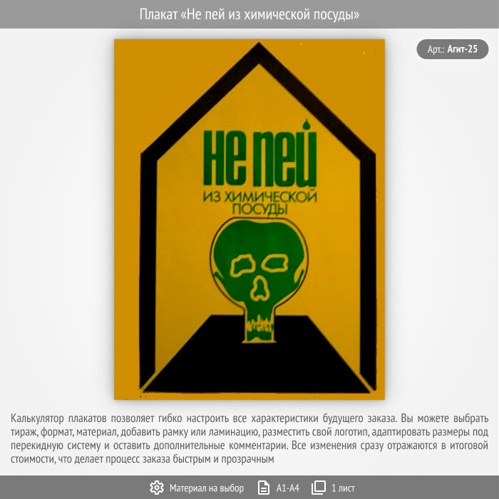Плакат «Не пей из химической посуды» (Агит-25, 1 лист) в Щёлково купить