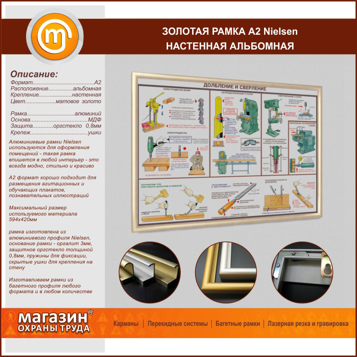 Багетная настенная рамка «Nielsen» А2 формата, альбомная, матовое золото в Щёлково купить