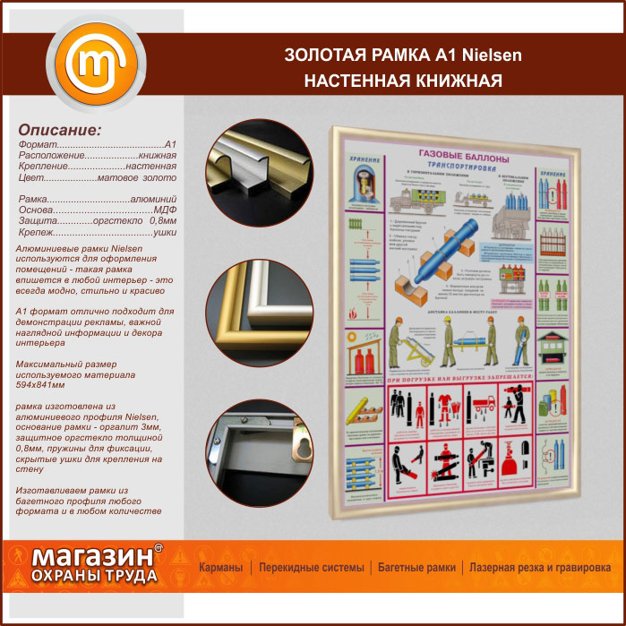 Багетная настенная рамка «Nielsen» А1 формата, книжная, матовое золото в Щёлково купить