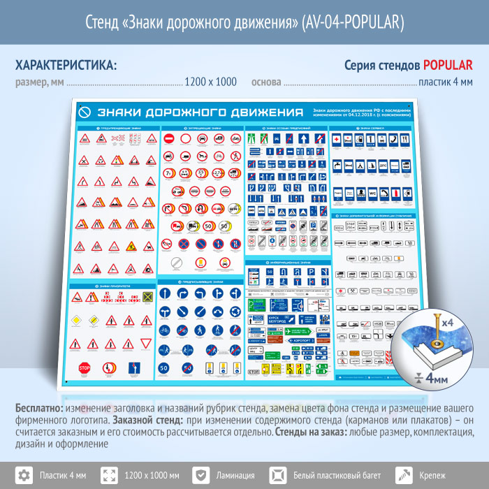 Стенд «Знаки дорожного движения» (AV-04-POPULAR) в Щёлково купить