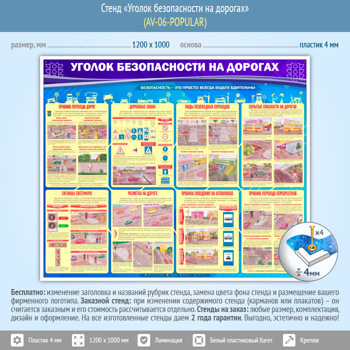 Стенд «Уголок безопасности на дорогах» (AV-06-POPULAR) в Щёлково купить