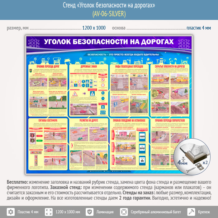 Стенд «Уголок безопасности на дорогах» (AV-06-SILVER) в Щёлково купить