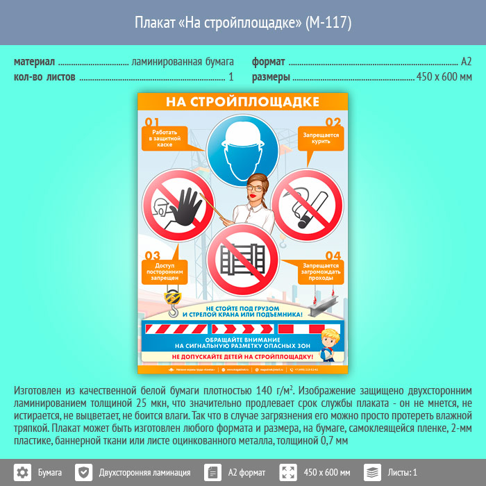 Плакат «На стройплощадке» (М-117, ламинированная бумага, А2, 1 лист) в Щёлково купить