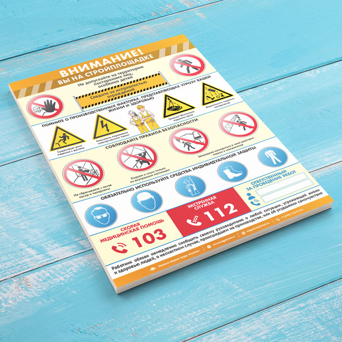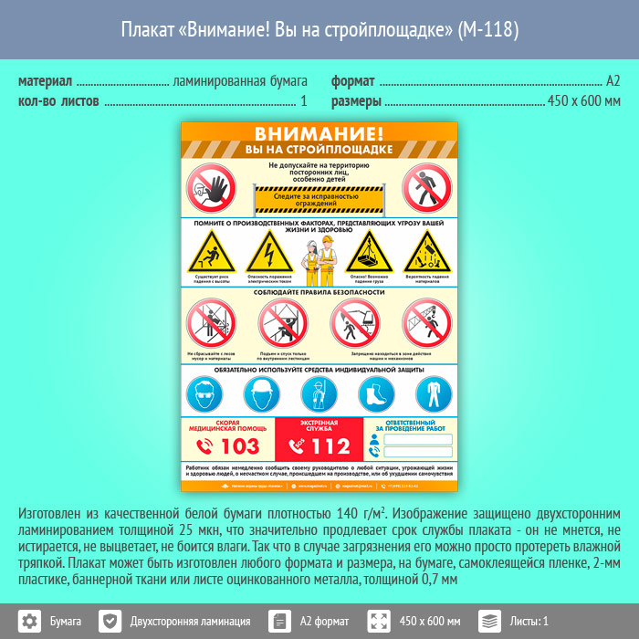 Плакат «Внимание! Вы на стройплощадке» (М-118, ламинированная бумага, А2, 1 лист) в Щёлково купить