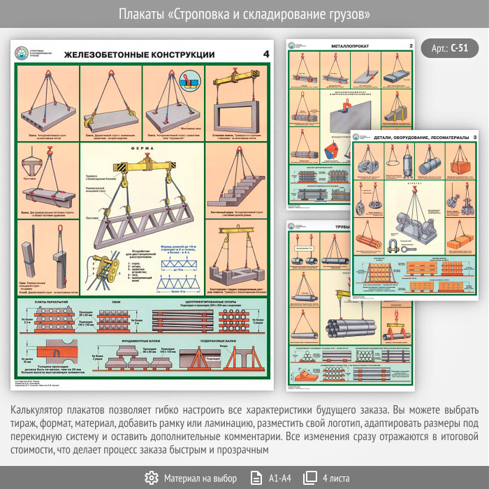 Плакаты «Строповка и складирование грузов» (С-51, 4 листа) в Щёлково купить