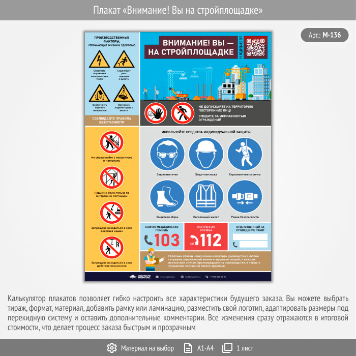 Плакат «Внимание! Вы на стройплощадке» с QR (М-136, 1 лист) в Щёлково купить