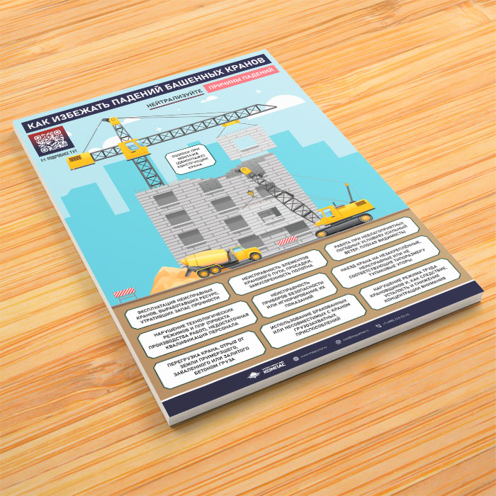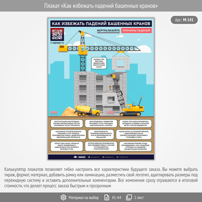 Плакат «Как избежать падений башенных кранов» с QR (М-141, 1 лист) в Щёлково купить