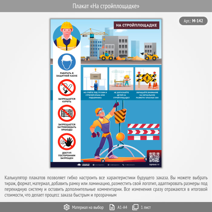 Плакат «На стройплощадке» с QR (М-142, 1 лист) в Щёлково купить
