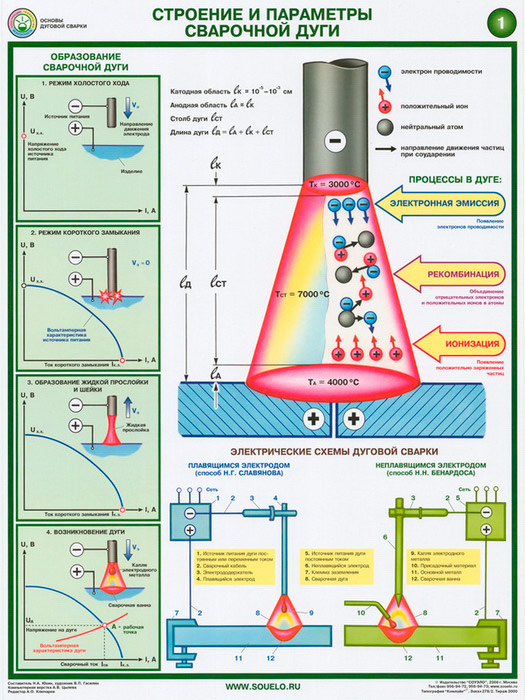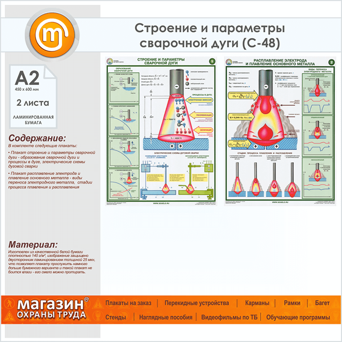 Плакаты «Строение и параметры сварочной дуги» (С-48, ламинированная бумага, А2, 2 листа) в Щёлково купить