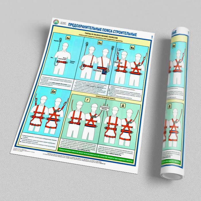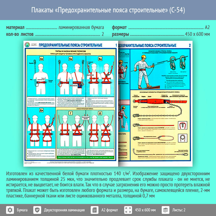 Плакаты «Предохранительные пояса строительные» (С-54, ламинированная бумага, А2, 2 листа) в Щёлково купить