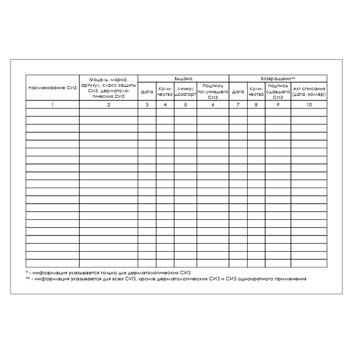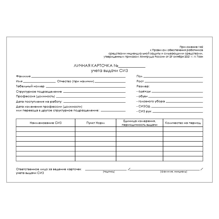 Карточка выдачи СИЗ (приказ Минтруда России от 29 октября 2021 г. №766н, упаковка 100 штук) в Щёлково купить
