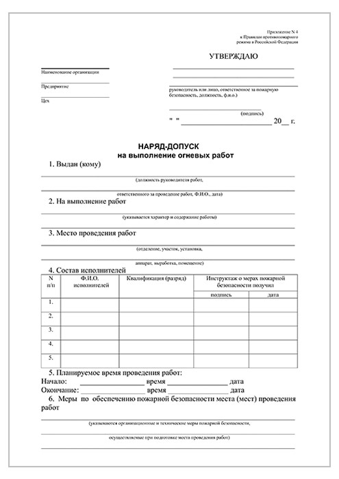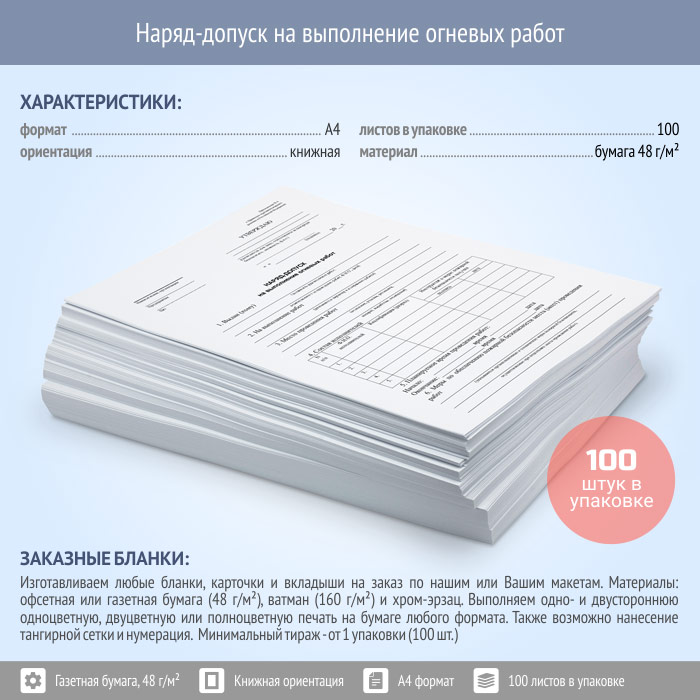 Наряд-допуск на выполнение огневых работ (упаковка из 100 штук) в Щёлково купить