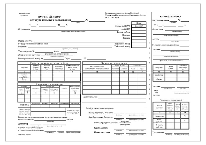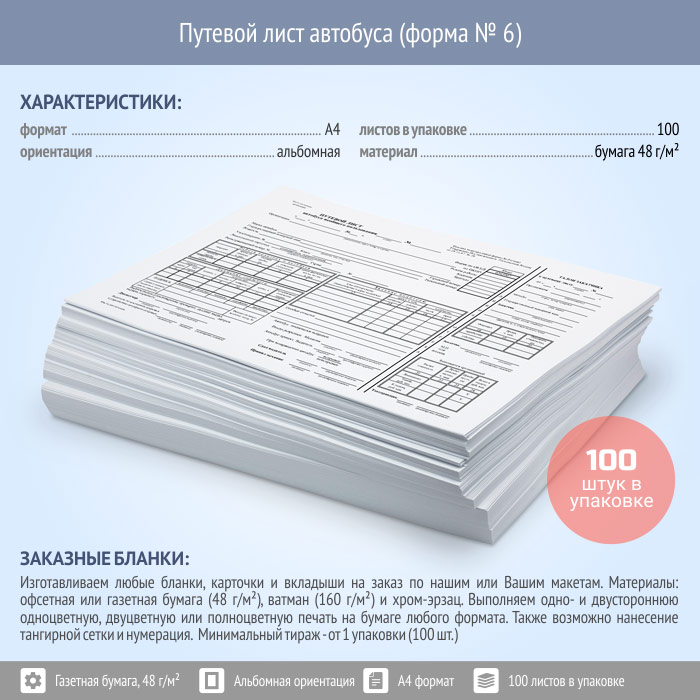 Путевой лист автобуса (форма № 6, упаковка из 100 штук) в Щёлково купить