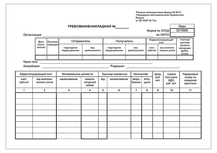 Требование-накладная (форма № М-11, упаковка из 100 штук) в Щёлково купить