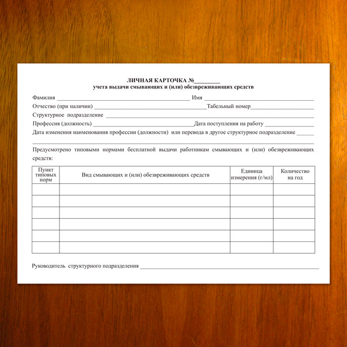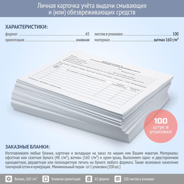 Личная карточка учёта выдачи смывающих и (или) обезвреживающих средств (упаковка из 100 штук) в Щёлково купить
