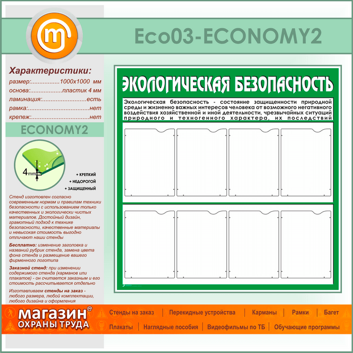 Стенд «Экологическая безопасность» с 8 карманами (ECO-03-ECONOMY2) в Щёлково купить