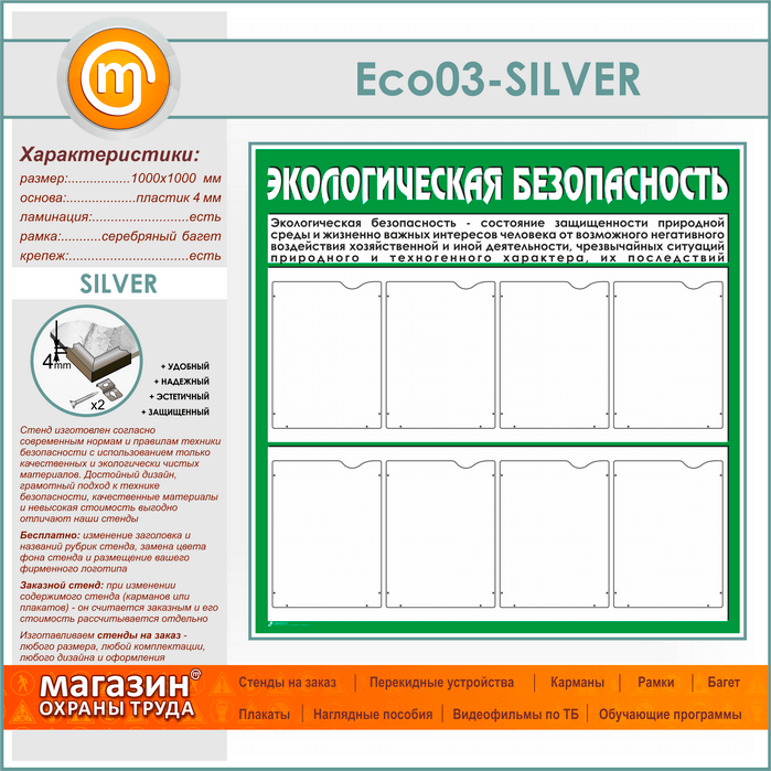 Стенд «Экологическая безопасность» с 8 карманами (ECO-03-SILVER) в Щёлково купить
