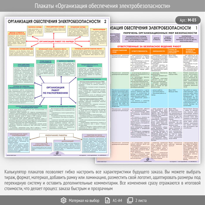Плакаты «Организация обеспечения электробезопасности» (М-03, 2 листа) в Щёлково купить