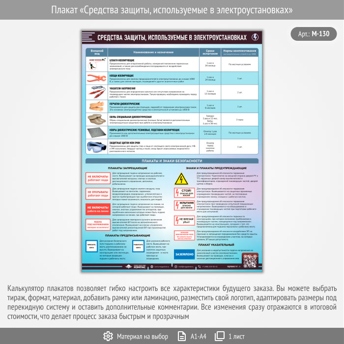 Плакат «Средства защиты, используемые в электроустановках» с QR (М-130, 1 лист) в Щёлково купить