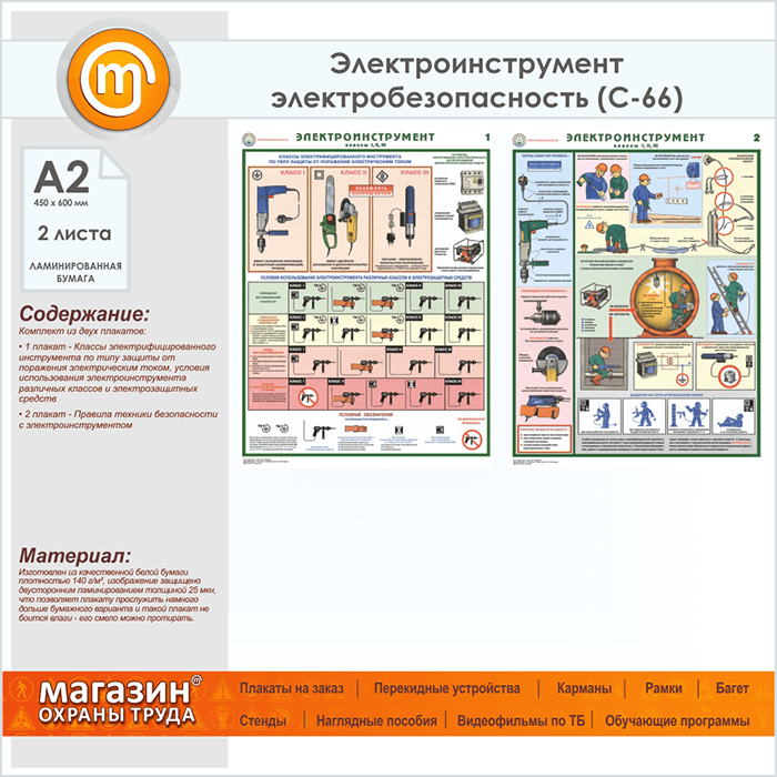 Плакаты «Электроинструмент - электробезопасность» (С-66, ламинированная бумага, А2, 2 листа) в Щёлково купить