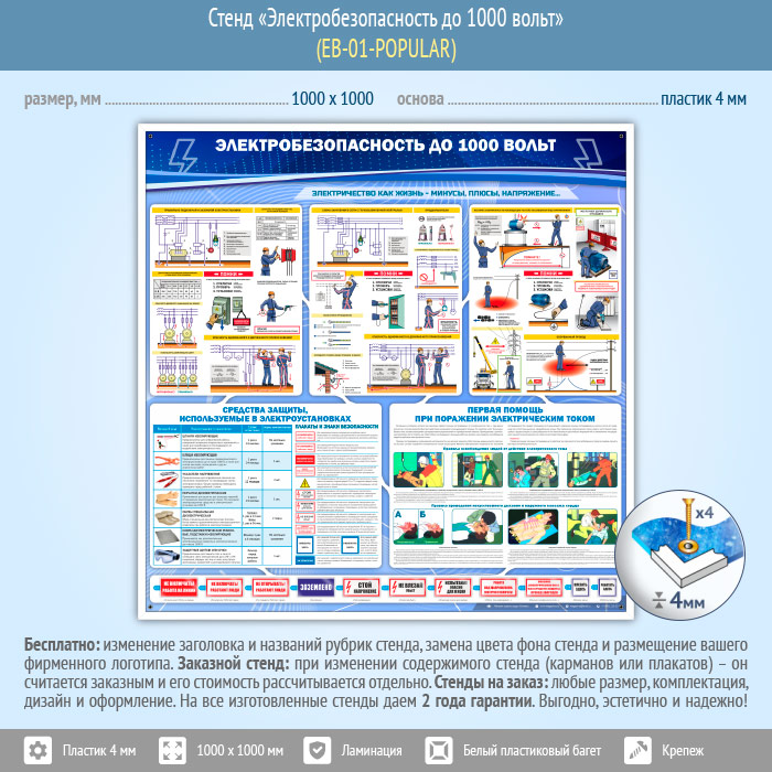 Стенд «Электробезопасность до 1000 вольт» (EB-01-POPULAR) в Щёлково купить