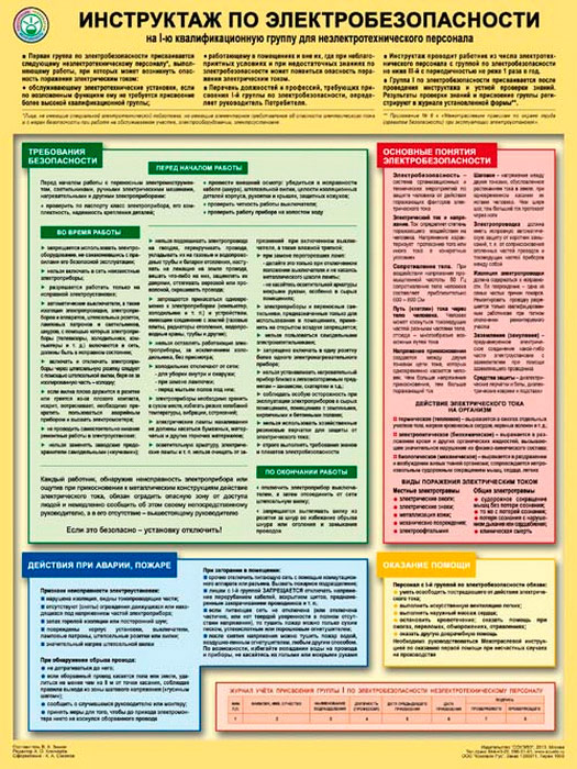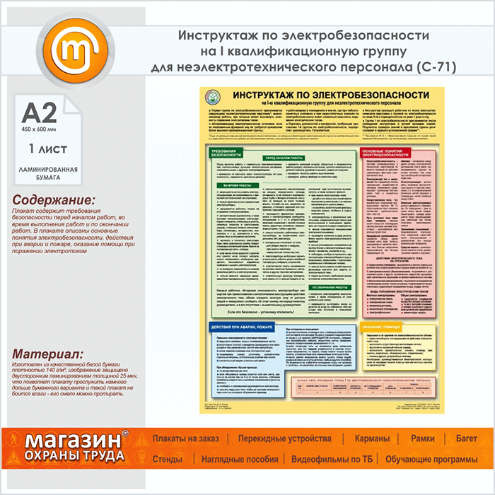 Плакат «Инструктаж по электробезопасности - на I квалификационную группу для неэлектротехнического персонала» (С-71, ламинированная бумага, А2, 1 лист) в Щёлково купить