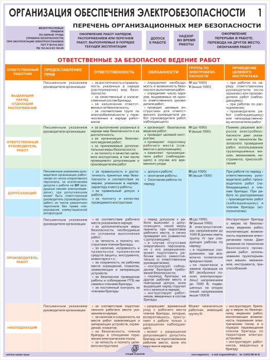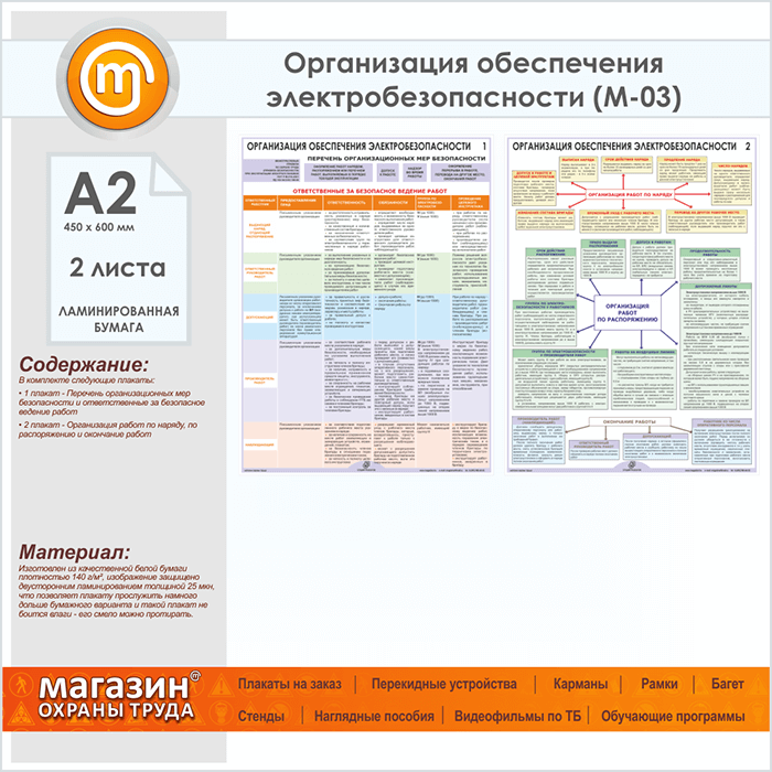 Плакаты «Организация обеспечения электробезопасности» (М-03, ламинированная бумага, А2, 2 листа) в Щёлково купить