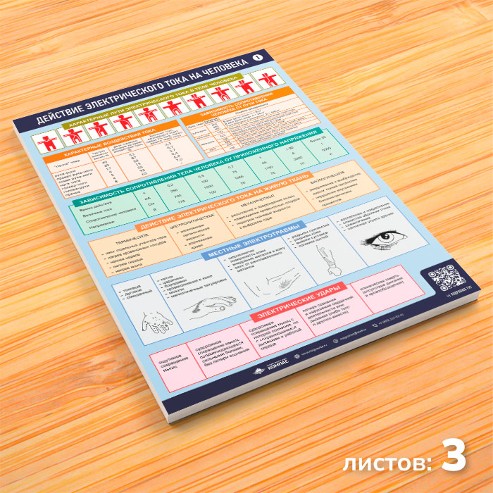 Плакаты «Действие электрического тока на человека» (М-04, ламинированная бумага, А2, 3 листа) в Щёлково купить