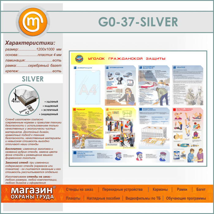 Стенд «Уголок гражданской защиты» с карманом (GO-37-SILVER) в Щёлково купить