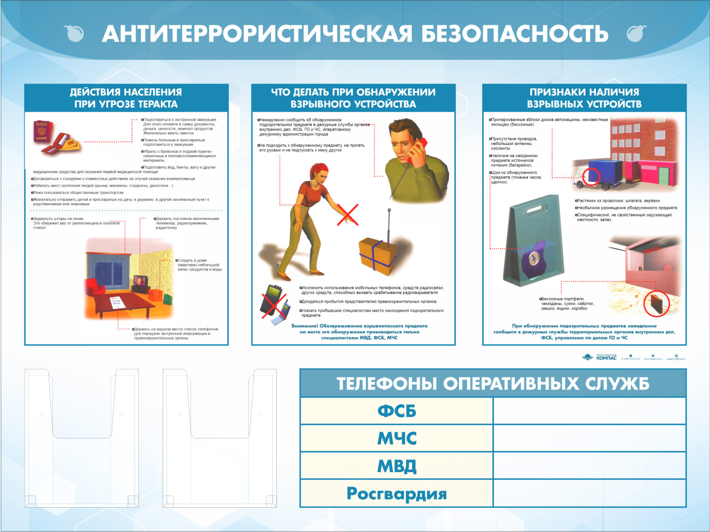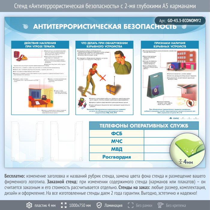 Стенд «Антитеррористическая безопасность» с 2-мя глубокими А5 карманами (GO-43.3-ECONOMY2) в Щёлково купить