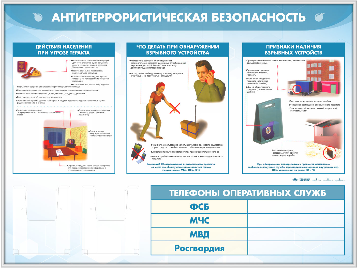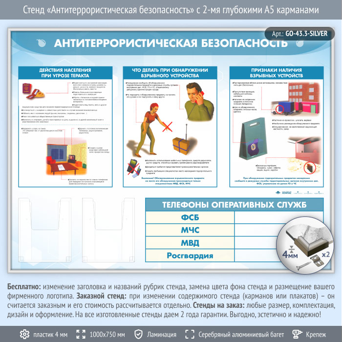 Стенд «Антитеррористическая безопасность» с 2-мя глубокими А5 карманами (GO-43.3-SILVER) в Щёлково купить