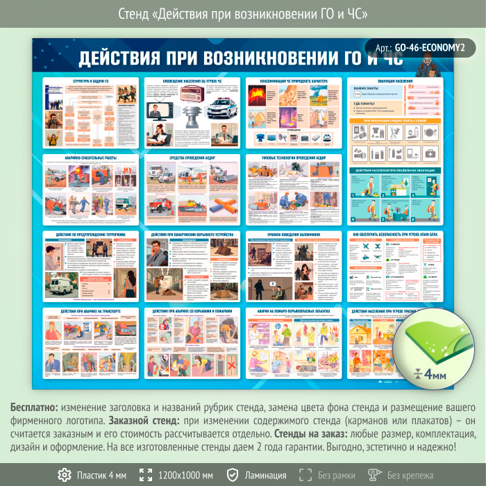Стенд «Действия при возникновении ГО и ЧС» (GO-46-ECONOMY2) в Щёлково купить