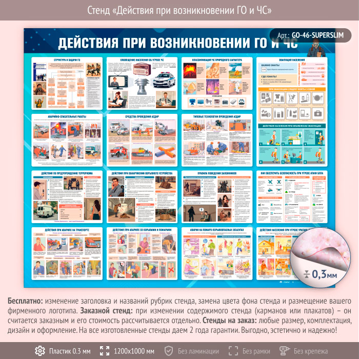 Стенд «Действия при возникновении ГО и ЧС» (GO-46-SUPERSLIM) в Щёлково купить