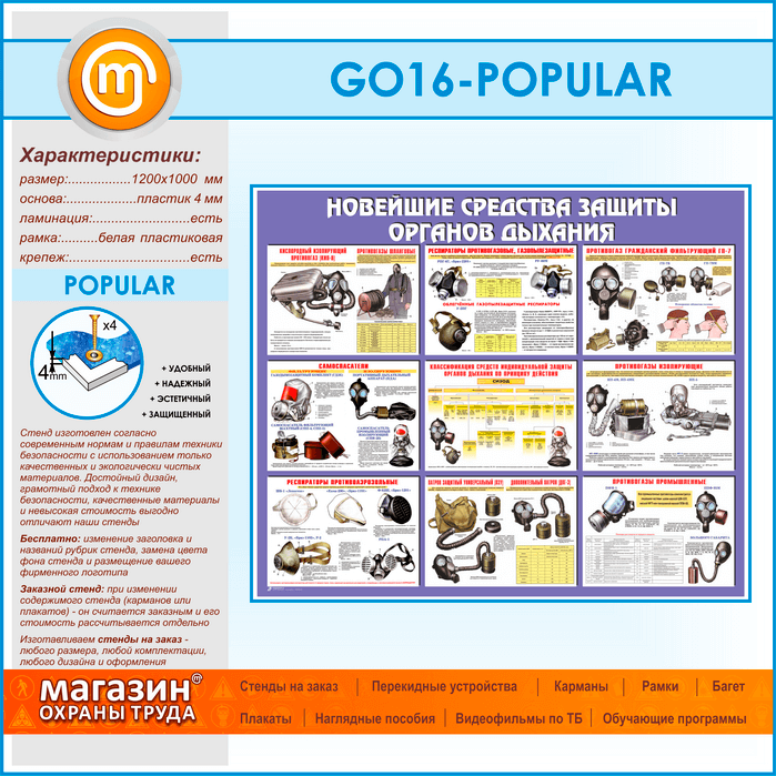 Стенд «Новейшие средства защиты органов дыхания» (GO-16-POPULAR) в Щёлково купить