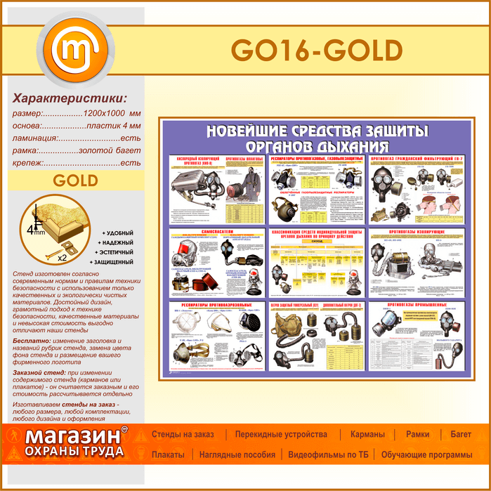 Стенд «Новейшие средства защиты органов дыхания» (GO-16-GOLD) в Щёлково купить
