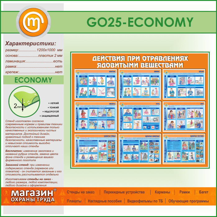 Стенд «Действия при отравлении ядовитыми веществами» (GO-25-ECONOMY) в Щёлково купить