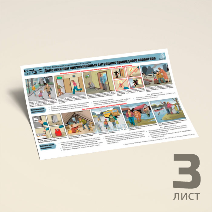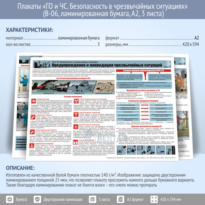 Плакаты «ГО и ЧС. Безопасность в чрезвычайных ситуациях» (В-06, ламинированная бумага, А2, 3 листа) в Щёлково купить