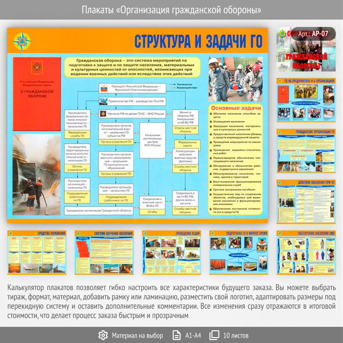 Плакаты «Организация гражданской обороны» (АР-07, 10 листов) в Щёлково купить