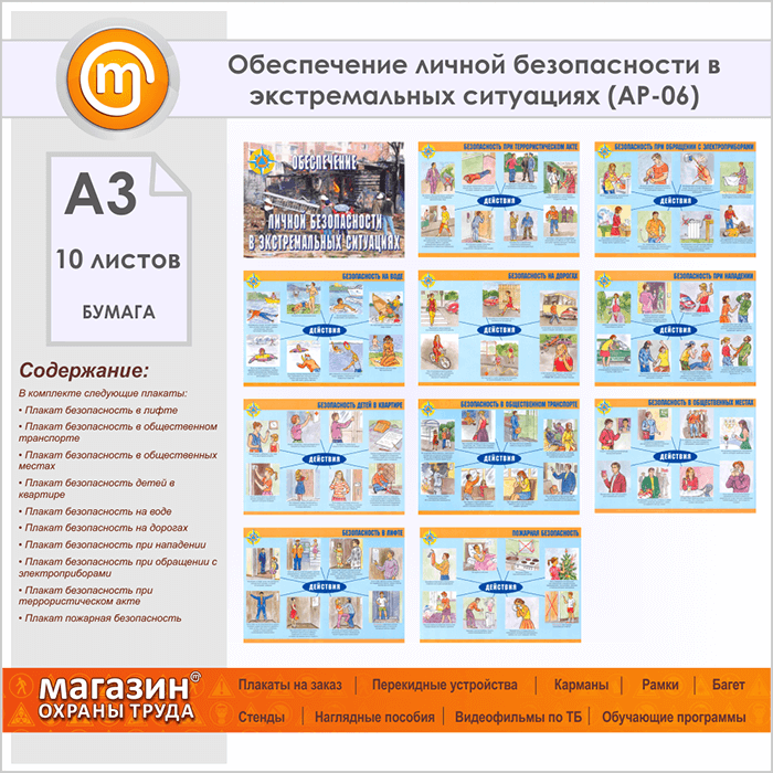 Плакаты «Обеспечение личной безопасности в экстремальных ситуациях» (АР-06, бумага, А3, 10 листов) в Щёлково купить