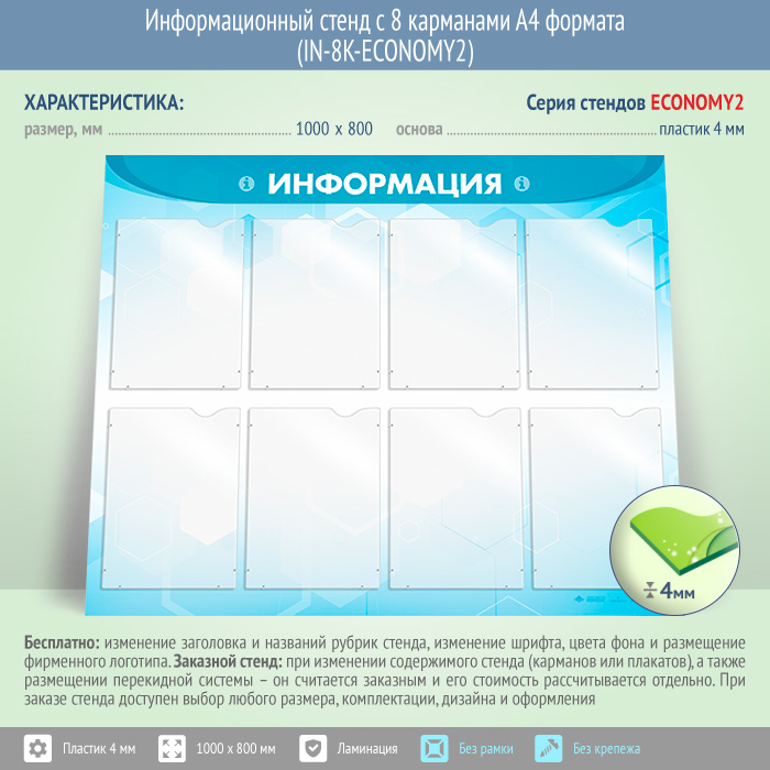Информационный стенд с 8 карманами А4 формата (IN-8K-ECONOMY2) в Щёлково купить