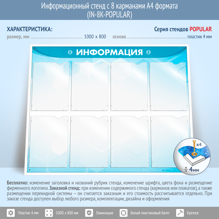 Информационный стенд с 8 карманами А4 формата (IN-8K-POPULAR) в Щёлково купить
