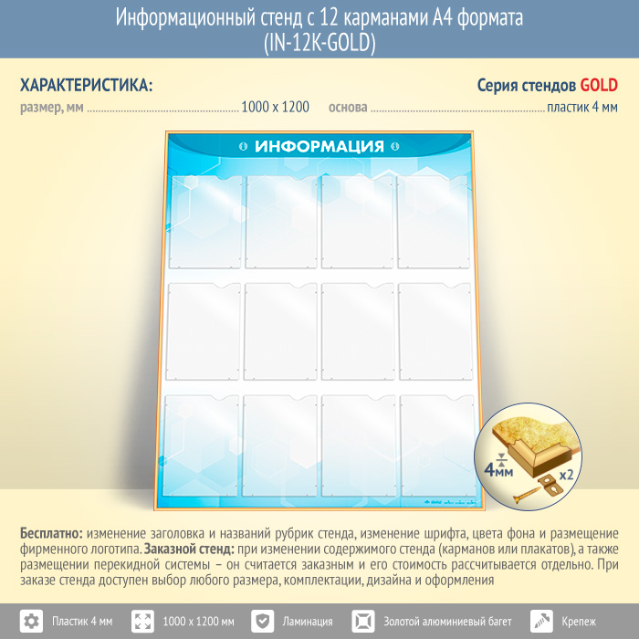 Информационный стенд с 12 карманами А4 формата (IN-12K-GOLD) в Щёлково купить