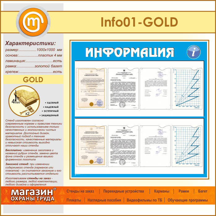 Стенд «Информация» с 8 карманами А4 формата (IN-01-GOLD) в Щёлково купить
