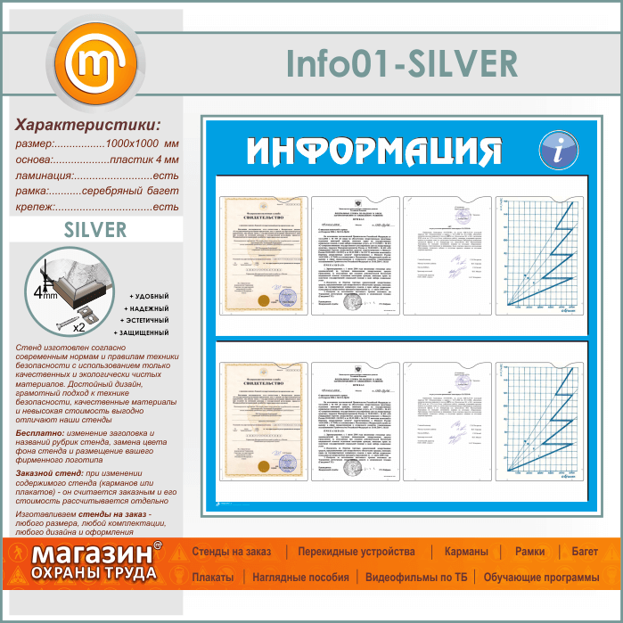 Стенд «Информация» с 8 карманами А4 формата (IN-01-SILVER) в Щёлково купить