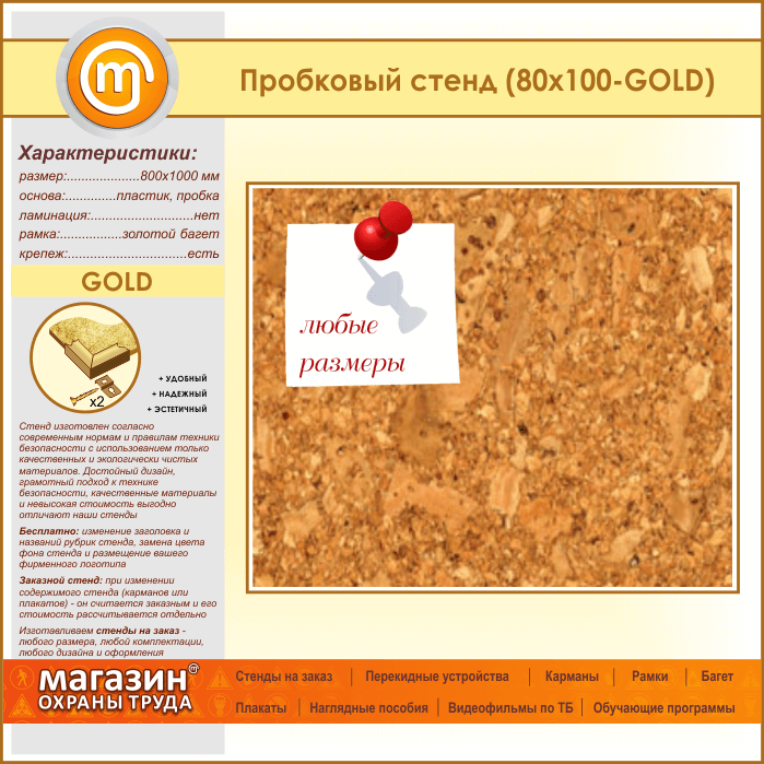 Пробковая доска, 100х80 см (IN-05-GOLD) в Щёлково купить